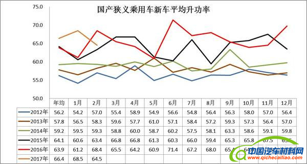 从发动机动力与油耗的均衡走势看,近几年来的油耗和动力提升的均衡管理效果突出。15年的的油耗保持在93%,但新车的平均功率达到64千瓦,整车企业的技术进步效果较突出。16年的功率状态维持在到63.9千瓦/升,油耗也降到三阶段的92%;17年2月的升功率64.5,油耗91%,油耗动力综合表现较强,但与外界的发展速度有所差距。