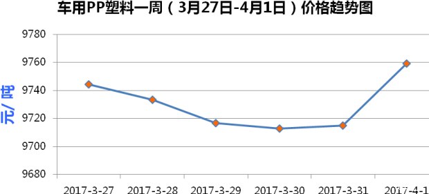 PP塑料本周内价格变化如下:3月27日-31日,价格小幅下跌,跌幅为29.63元/吨;3月31日-4月1日,价格上涨,4月1日价格为9759.26元/吨。PP塑料本周均价为9730.25元/吨,较上周下跌0.27%。