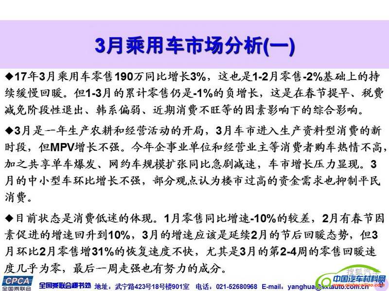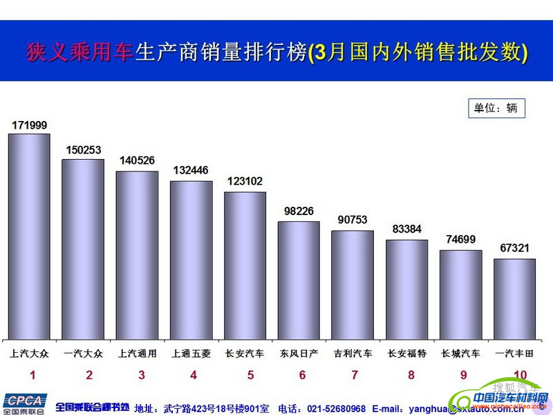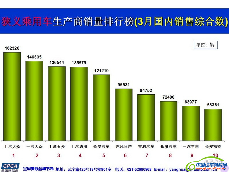 【销量】2017年3月国内乘用车企销量排名及4月市场预测