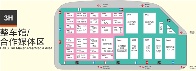 | 3H展馆 | 上汽商用车,中国重汽,江铃,四川现代,福田,庆铃,江淮,九龙 |