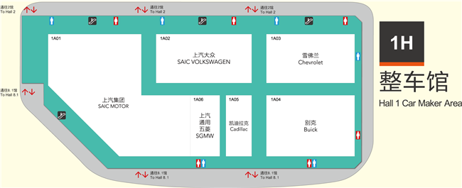 | 1H展馆 | 上汽集团,上汽大众,上汽通用五菱,卡迪拉克,雪佛兰,别克 |