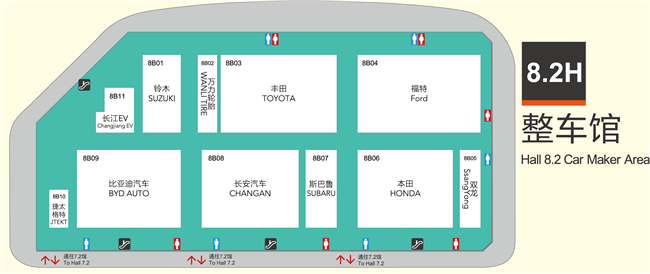 | 8.2H展馆 | 捷太格特,长江EV,比亚迪,铃木,丰田,长安汽车,斯巴鲁,福特,本田,双龙 |