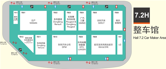 | 7.2H展馆 | 普利司通,日常NISSAN,雪铁龙,东方雷诺,东方汽车,标志,广汽三菱,吉利,起亚,南京依维柯,LG |
