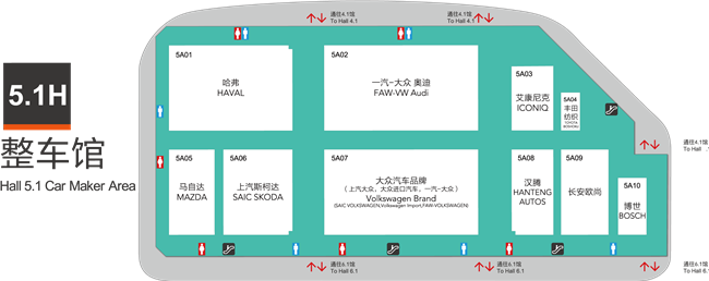 | 5.1H展馆 | 哈弗,马自达,上汽斯柯达,一汽大众,奥迪,爱康尼克,丰田,汉腾,长安欧尚,博世 |