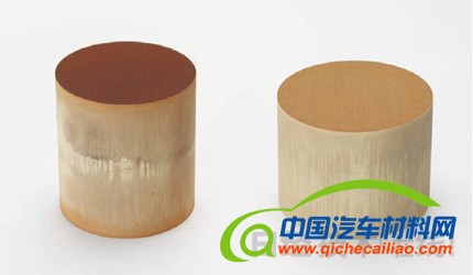| 图6 新款雅阁使用的催化剂减少了Rh的用量 左为放置在发动机正下方的催化剂,右为放置在地板下方的催化剂。 |