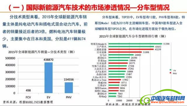 从车型来看,现在新能源汽车按我们国家的界定,主要就是纯电动和插电式混合动力,还有燃料电池汽车。目前,主要还是在纯电动和插电式混合动力这一块,特别是纯电动汽车的量最大。燃料电池汽车现在从全球看处于产业化的初期,也就是产品的市场导入阶段,主要的销量是在日本、美国,实际上主要是丰田的销量。去年大概是500辆的市场规模。