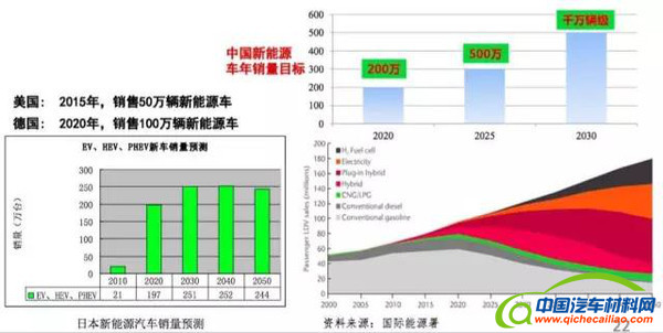 右上角的这张表是我们的技术路线图课题组对未来形成的预测和判断,中国新能源汽车年销量的目标,2020年预计在200万辆的规模,到2025年是500万辆,到2030年是千万辆的市场销售规模。