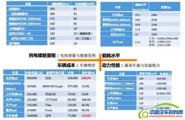 从能耗和动力性能上来看,这是显性的指标,日产的LEAF是一款代表性的车型,这款车的车重将近1.5吨,它的能耗百公里是在11.4度的水平。看看我们现在的一些产品,在能耗水平上还是有欠缺,比如说上汽的150,车重比人家的轻了将近400公斤,但是电耗比人家的略高一点。说明国内的整个性能的优化,低能耗方面还要继续下工夫。所以目前新能源汽车补贴政策里也在酝酿,除了对纯电动乘用车子有续驶里程的要求之外,要增加对能耗的一些要求。