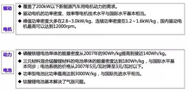 电池的进步较为明显。磷酸铁锂的电池得到了大规模的普及应用,能量密度从2007年的90瓦时/公斤提高到目前140瓦时/公斤。三元材料这近几年得到了重视,也开始批量化地上车,能量密度能够得到180瓦时/公斤,与国际单体的水平基本上同步。
