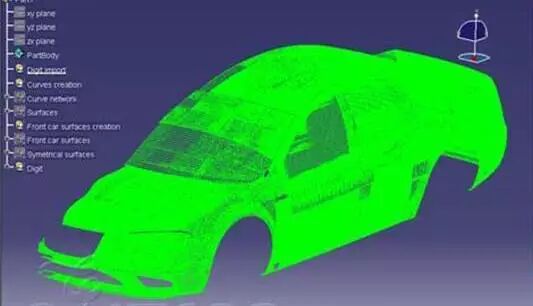 在油泥模型完成后,使用三维测量仪器对油泥模型进行测量,测量生成的数据称为点云,工程师根据点云使用曲线软件比如Catia、UG imageware等来构建汽车产品的外形。