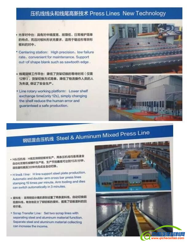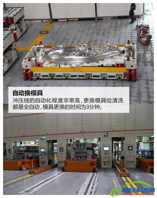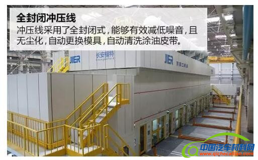 长安福特杭州工厂的冲压车间建筑面积26000㎡,产能一期为25万辆/年。它有两条高速全自动化双臂机械横杆生产线,共有9台冲压机,可实现1模4件生产,生产节拍最高可达到15次/分钟,端拾器和模具三分钟内完成自动切换。