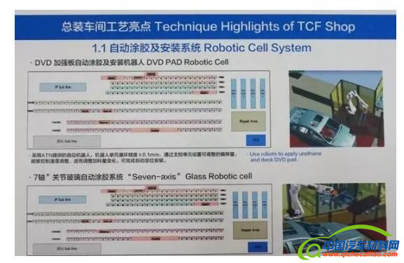 长安福特杭州工厂焊装车间建筑面积60000㎡,一期最大产能25万台/年。它采用全自动柔性化生产线,可实现6个车型混线生产,自动化率77%。