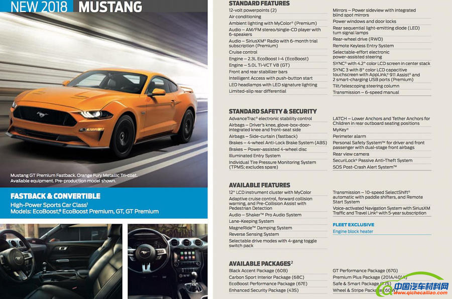 据外媒5月8日报道,2018新款福特野马运用最新科技,采用更简约设计,在其前身基础上做出一系列改进,将于2018年登陆英国。近日该车的宣传册在网上曝光,更多细节浮出水面。