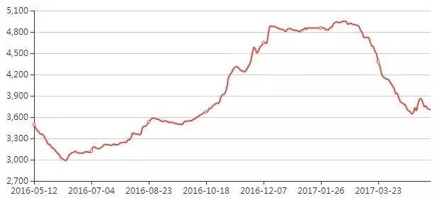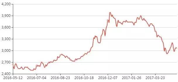 热轧钢年度走势图(2016年3月10日——2017年5月12日)