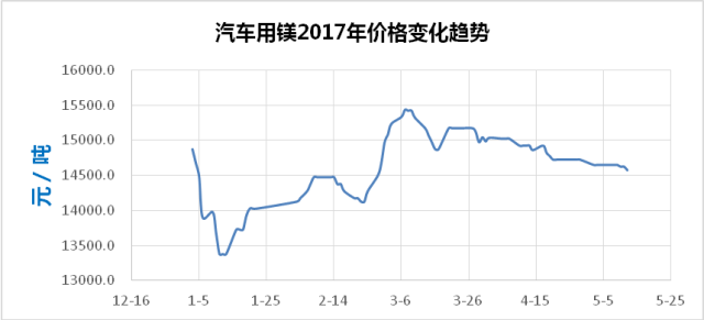 (汽车用镁年度价格趋势:2017.01.03-2017.05.12)