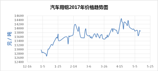 (汽车用铝年度价格趋势:2017.01.03-2017.05.12)