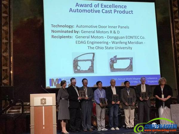 5月23日,在新加坡召开的第74届世界镁业大会上,国际镁协揭晓并颁发了2017年度国际镁协优秀奖。经过评审,万丰镁瑞丁Meridian申报的“GM侧门板整体设计压铸项目”被国际镁协评奖委员会授予“2017 国际镁协汽车类铸造产品优秀奖”。在闭幕晚宴期间的颁奖仪式上,国际镁协主席简·盖伊女士为万丰镁瑞丁首席执行官罗建及项目团队负责人颁发了奖牌。