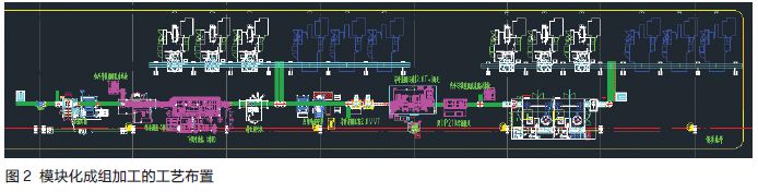 近年来,我们在工艺流程的设计思路上做了一些转变,尤其是对加工设备的布局,逐渐由原来一个流的直线布置(见图1)向模块化、成组加工的岛状工艺布置(见图2)转变。一个流布置的工序状态多、重复定位多和单机故障的出现会影响到整条加工线的生产,而采用模块化布置避免了这些现象。从实际的生产情况来看,由于工序状态少,更有利于自动化的实现;工序集中,同时使精度更容易控制,进一步提升了产品质量。随着同平台产品