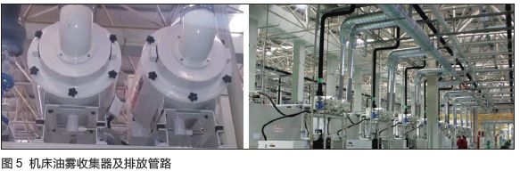 对于加工车间油雾的处理随着环保等级的不断提升,我们从最初的单机过滤后直接排放到厂内,到单机过滤后通过管路集中排到厂外,最后发展为通过管路收集后在车间内进行集中过滤处理后再排放(见图5)。