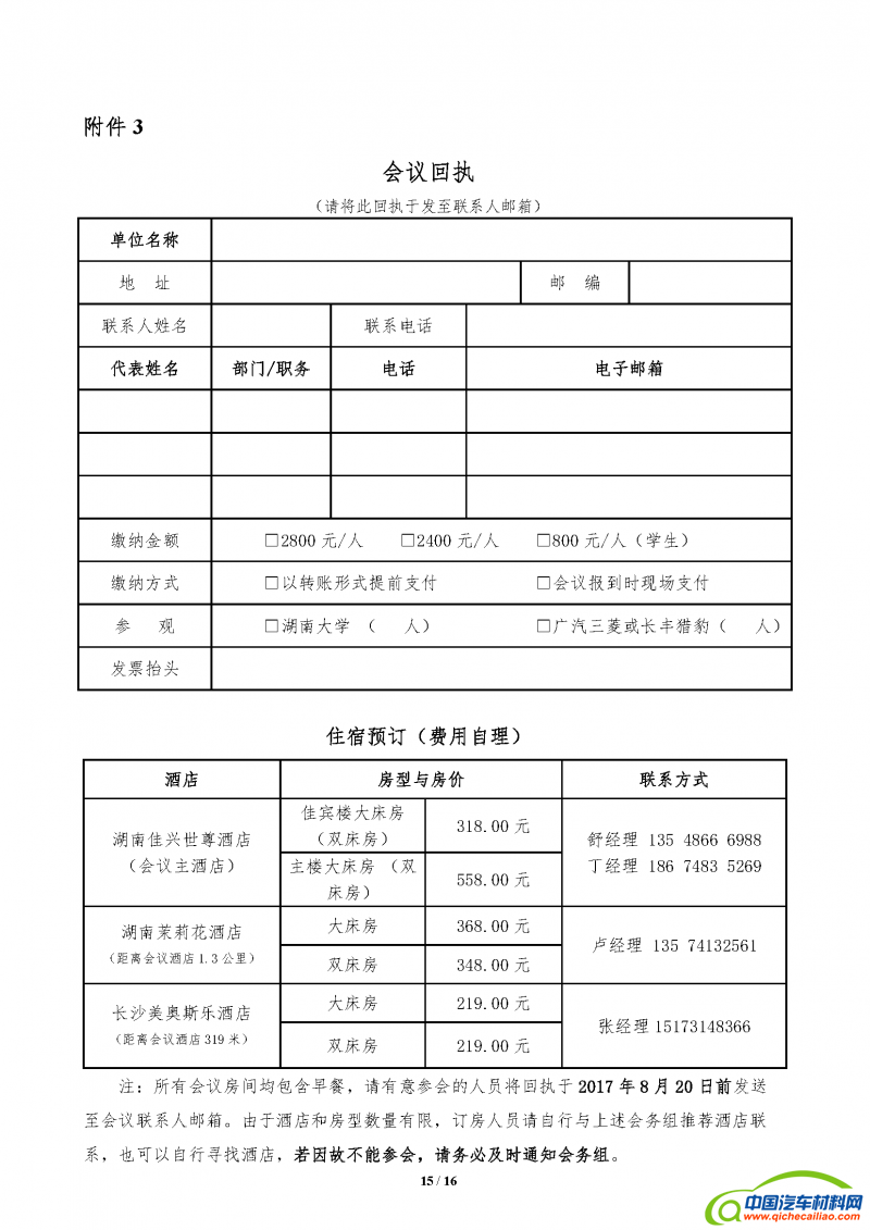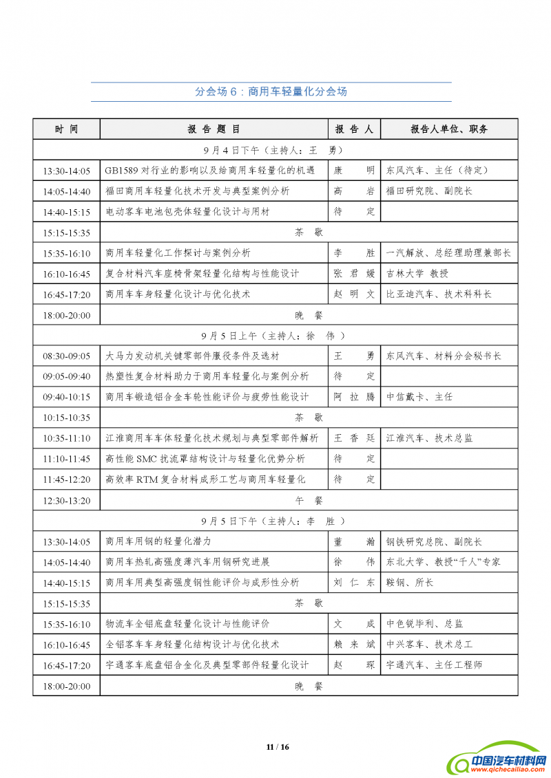 用 途:2017年(第十一届)中国汽车轻量化技术研讨会