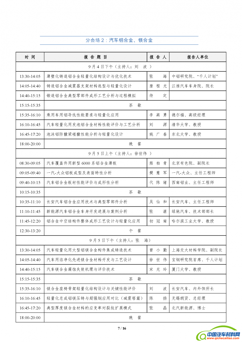 5)轻量化联盟特邀的报告人参会免费。