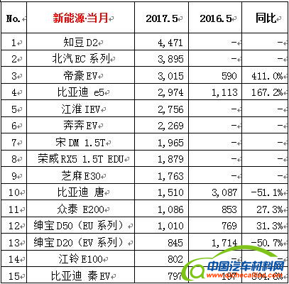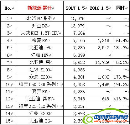1-5月,国内新能源累计销量前三位的企业是比亚迪(22809辆)、吉利汽车(21472辆)、北汽新能源(15376辆)。