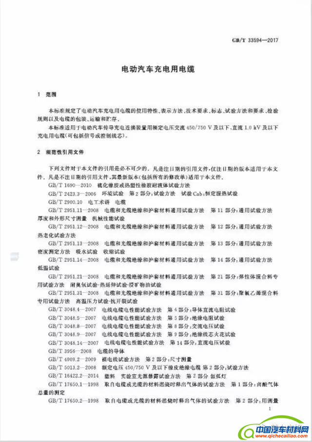 终于发布了!标准规定了电动汽车充电用电缆的使用特性、表示方法、技术要求、标志、试验方法和要求、检验规则以及电缆的包装、运输和贮存,将充电桩电缆纳入一个标准的体系中来,既能够让生产制造企业有统一的标准作为参考,也可以为质量安全保驾护航,为促进电动汽车充电设施发展提供了重要的技术支撑。