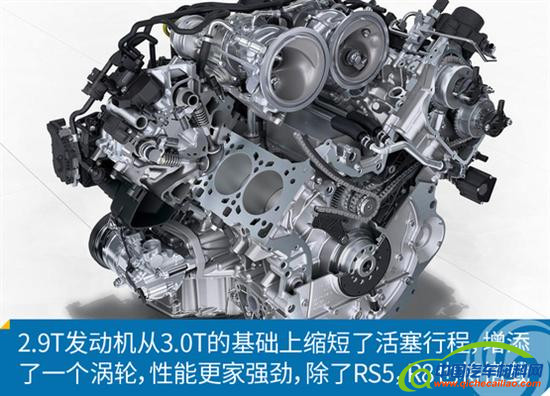 差点儿忘了说了,跟新3.0T一起研发的还有一款高性能2.9T发动机,这款发动机相比3.0T多了一个涡轮,变成了双涡轮增压发动机,然而为了更好的活塞运动,冲程缩短了3毫米,这样就得来了2.9L这样一个排量,这款发动机将最先应用在全新RS5的身上,之后包括保时捷等更多车型都会搭载。