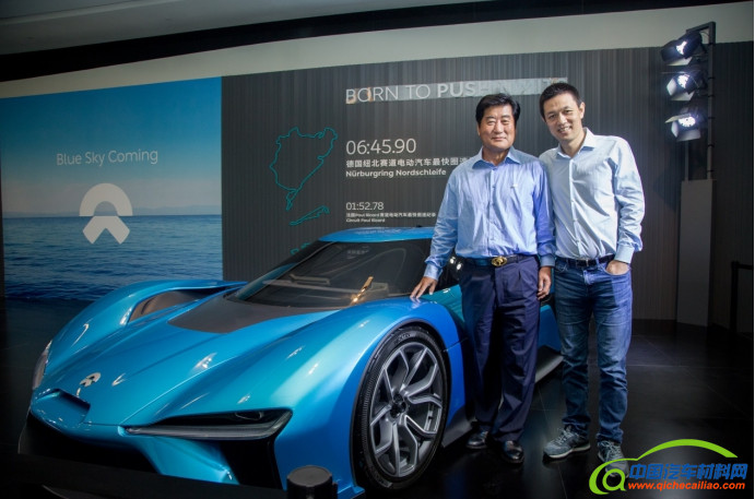 钟玉董事长和李斌董事长在蔚来旗舰超跑EP9前合影
