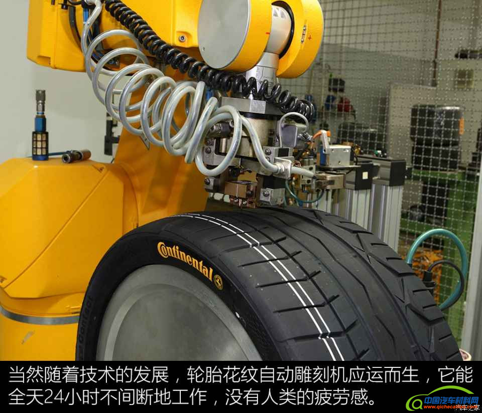 但由于橡胶配方的限制,自动雕刻机不能为了加快速度而无限制提升刀头温度。因为过高的刀头温度会让橡胶的原有性质改变,从而影响后续测试的准确性。所以虽然自动雕刻机能不停地工作,但工作速度却因橡胶配方的限制而无法超越人类太多。马牌的轮胎雕刻室一共有16位雕刻师和数台自动雕刻机,每年最多能够雕刻2000个轮胎,其中包含概念轮胎以及新开发的量产轮胎等。