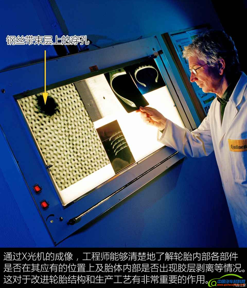 人们去医院看病,医生可能会根据诊断的需求要求病人进行X光检查。X光机能够把病人身体内部结构通过影像的方式呈现在胶片之上,从而为医生的判断提供参考依据。轮胎研发过程中,同样会用到X光机。