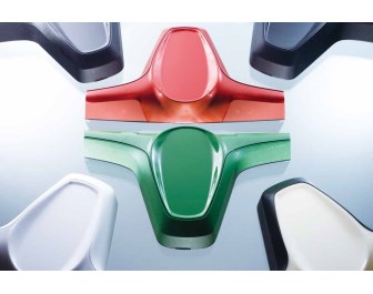 ColorForm技术将注塑与反应性工艺机械组合在一起,可实现全自动化制造。与之前的系统相比,制造单元体积减小20%,从而减小了所需的安装空间。介质管线较短也提高了工艺稳定性。在模具成型工艺过程中,热塑性塑料基体成型后直接在模腔中用聚氨酯丙烯酸酯(PUA)或聚氨酯(PU)涂覆,一分钟内制成具有所需上漆颜色、优异质量表面的部件。