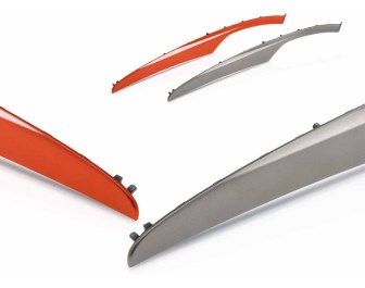 采用ColorForm工艺为汽车内饰制造的饰条。克劳斯玛菲表示,涂覆系统的混合头也有重大改变。其重量更轻,约减少30%,结构比以前更加紧凑,因而易于在模具上安装,并便于处理。