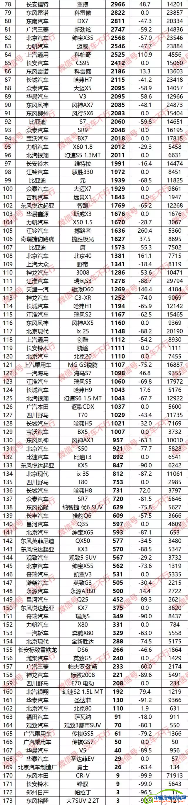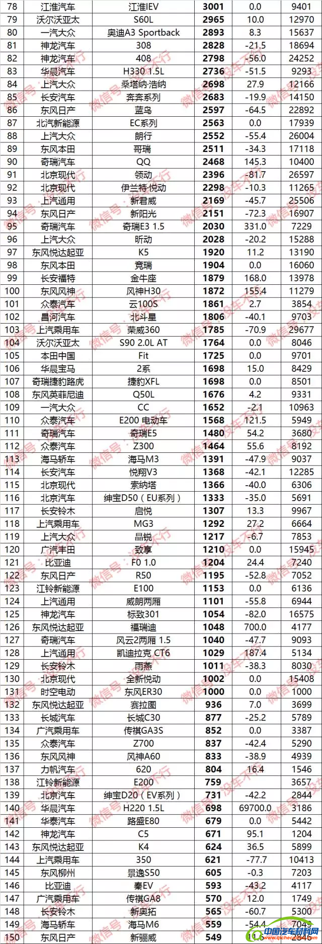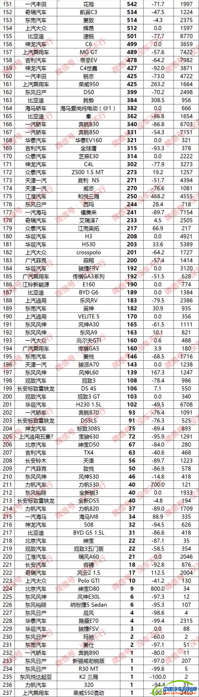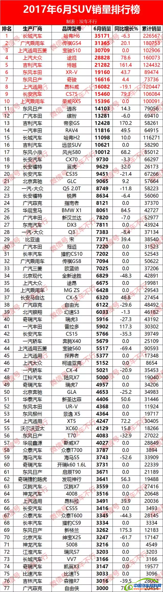 SUV方面,前三名差距不大,均破3万辆大关,哈弗H6同比略微下跌,GS4依旧增速明显,宝骏510更是势不可挡。车行哥估计,或许前三甲的常态就快被打破了。