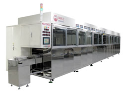 超声波系统的应用,大大提高了对精密零部件的清洗效果。和科达(AMTS 2017 展位号:E1-C20)的全自动超声波清洗机采用了PLC全程序控制与触摸屏操作界面,在清洗过程中实现全自动控制,并利用机械手平稳运行。其慢拉脱水工艺能有效切除平板式零件表面水渍,防止残留水渍干燥后留下污斑。烘干方式则采用槽式或隧道式热风烘干,配有耐高温高效过滤器,保证烘干腔内空气洁净。