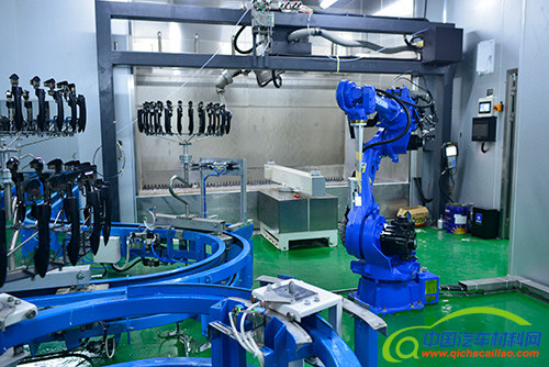 新力光(展位号:E4-B01)带来的涂装生产线可柔性生产,即能进行汽车塑胶外壳的喷涂生产,也可进行与汽车塑胶外壳大小相近、油漆工艺相同的塑胶饰件的喷涂生产,目前喷涂产品是汽车门把手及后视镜。新力光在设计时,就以安全、节能、环保、经济、可靠为原则,以布局合理、参观性好、操作性强、物流顺畅、维护方便为目标,最后选定了采用机械手喷涂模式。