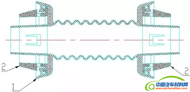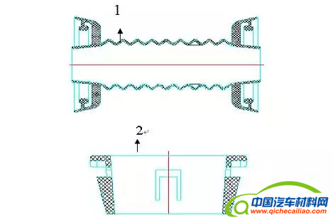 注: 1--橡胶护套; 2--塑料支架(导向结构)