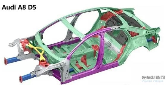 2017年4月份,据多家正规媒体报道,计划于2018年发布的新款奥迪A8(D5)车型正式放弃全铝车身,铝合金的占比仅为58%,车架的40%为钢结构,其中16.5%为超高强度热成型钢,这也意味着奥迪正逐步开始“脱离全铝阵营”。这是自奥迪1994年研制A8使用全铝制白车身后的重大转变。