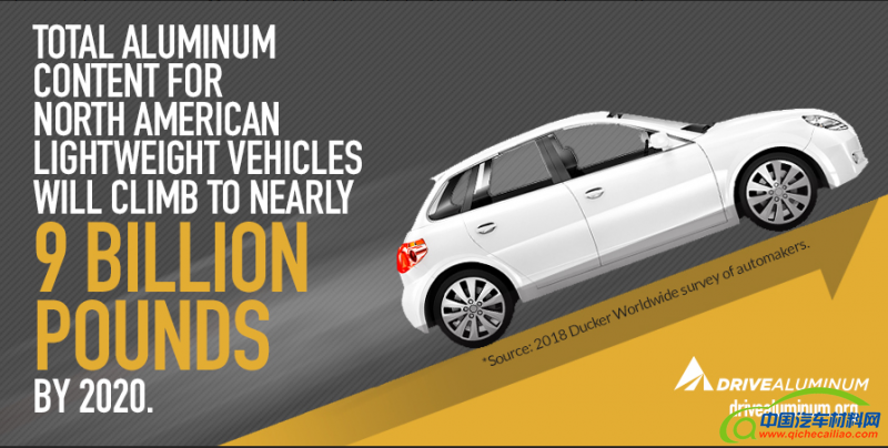 “随着汽车设计向着多材料化发展,汽车用铝量不断增涨。在过去的40年,汽车用铝量不断增涨,这是铝材在其他任何行业或产品领域都从未出现的高水平增涨。然而,这种变化的真正赢家是美国消费者。他们可以选择具有高性能,高效率,安全,可持续和更好驾乘感受的新一代汽车或卡车“,铝协会总裁兼首席执行官Heidi Brock说。“铝业蓬勃发展对于汽车制造商、美国制造业甚至美国健康经济的发展至关重要。 自2013年以来,铝行业投资了超过20亿美元,以确保美国的产能增加。随着其需求量的持续增长,该行业准备在国内制造业岗位上继续进行此类投资。