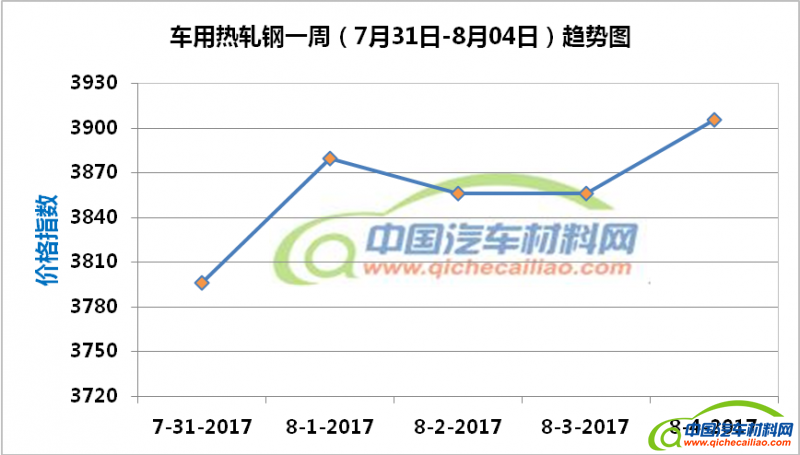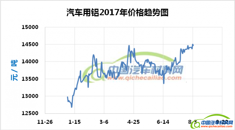 (汽车用铝年度价格趋势:2017.01.03-2017.08.04)