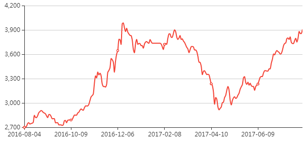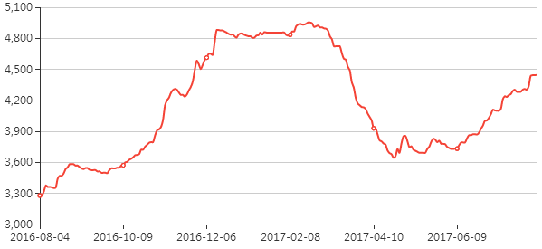热轧钢年度走势图(2016年08月04日——2017年08月04日)