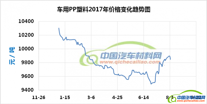 (车用PP年度价格趋势:2017.01.03-2017.08.04)