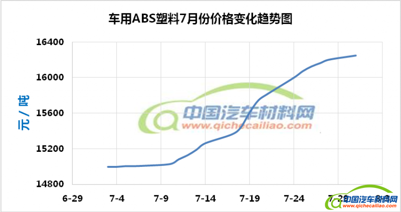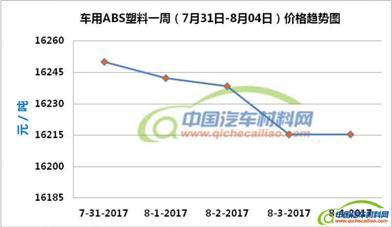 ABS塑料本周价格呈持续下跌趋势,一周内跌幅达34.62元/吨。本周五价格涨至16215.38元/吨。车用ABS塑料本周均价为16232.31元/吨,较上周上涨0.74%,较7月份均价上涨4.73%。