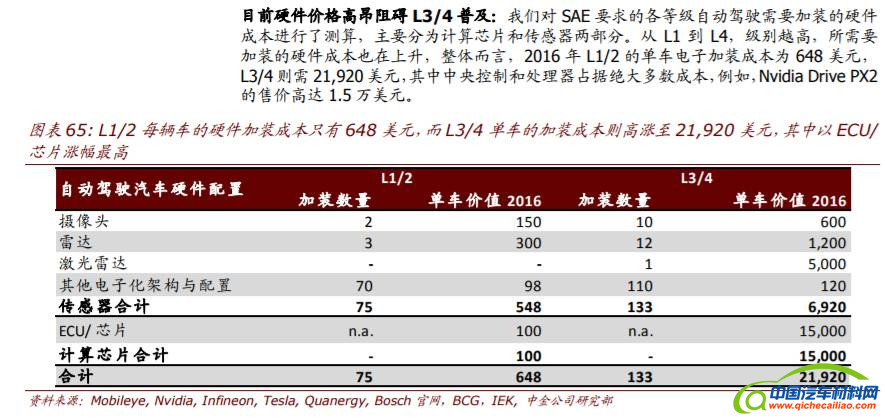 尽管特斯拉的 Autopilot 只有 L2 级别,但是 Autopilot 上搭载的英伟达的 DRIVE PX2 芯片,根据业内专家反馈,成本在 1.5W 美元左右。虽然用户在购车时 Autopilot 是作为选装件,但是选装仅仅是在软件上进行激活, Autopilot 的硬件是完整配置在每一辆车上的。