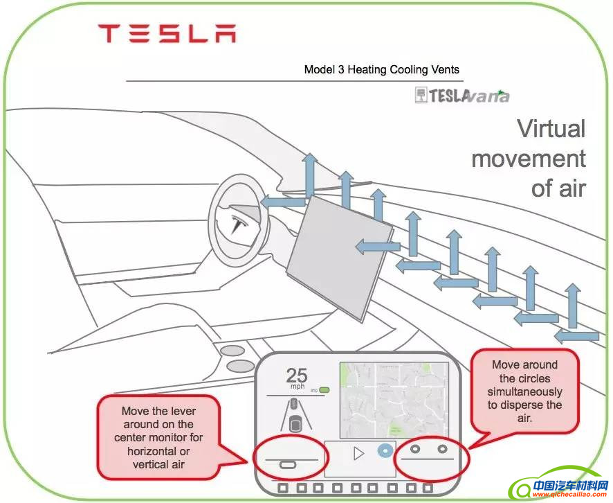 Model 3 的驾驶舱是没有传统的空调出风口的(后排有),看图。