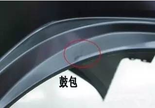 汽车保险杠,表面有鼓包,位置大致固定,位于行李箱盖板对应的转折位置,产生几率很高,产生鼓包会对其表观质量产生不良影响。