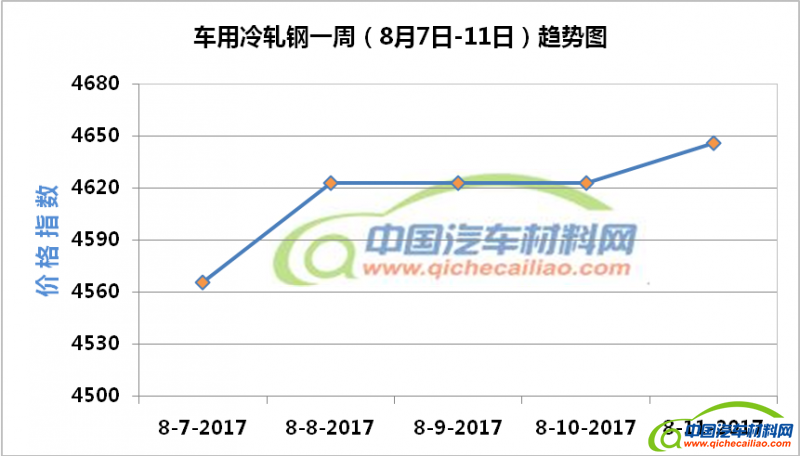 冷轧钢本周价格指数整体呈稳中上涨趋势,一周内涨幅为80。冷轧钢本周五价格指数涨至4646。车用冷轧钢本周平均价格指数为4616.20,较上周上涨4.43%,较7月份均价上涨9.53%。