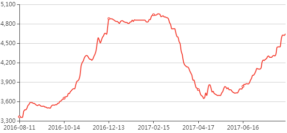 冷轧钢年度走势图(2016年08月11日——2017年08月11日)