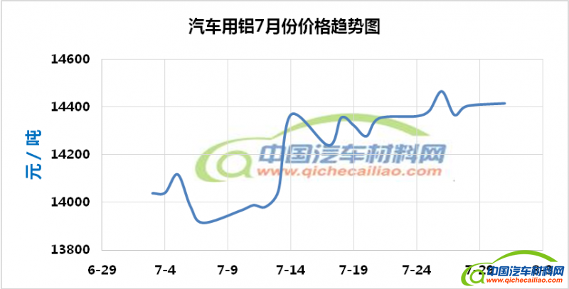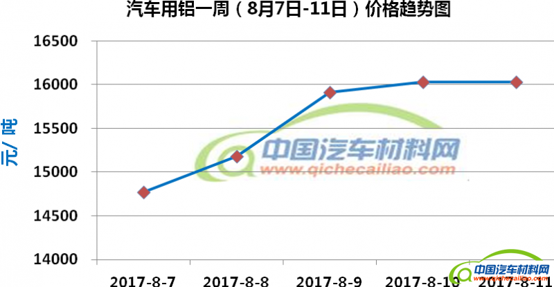 汽车用铝本周内价格持续上涨,一周内涨幅达1261元/吨。。车用铝本周均价为15584元/吨,较上周上涨7.96%,较7月份均价上涨9.68%。