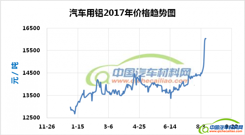 (汽车用铝年度价格趋势:2017.01.03-2017.08.11)